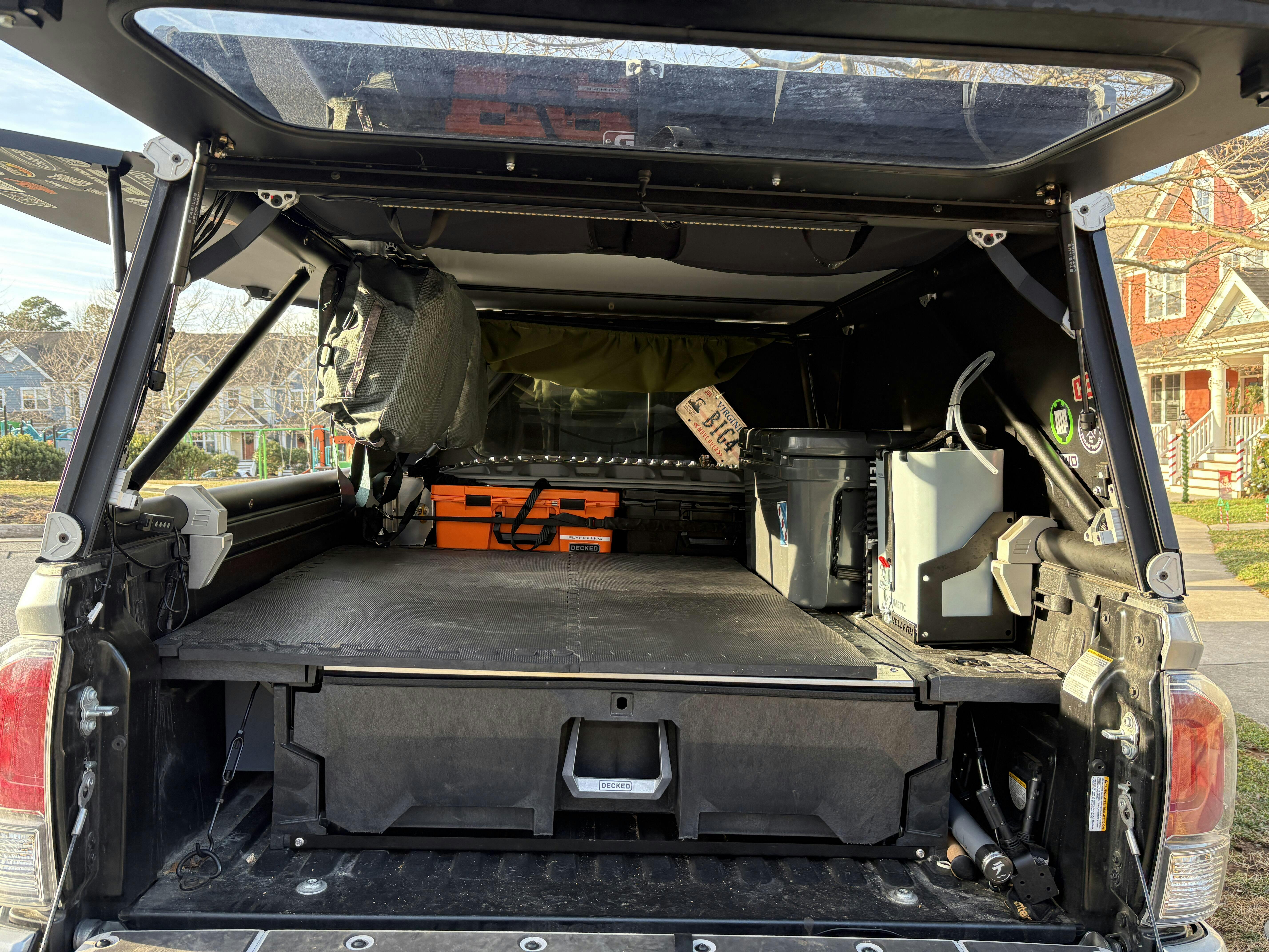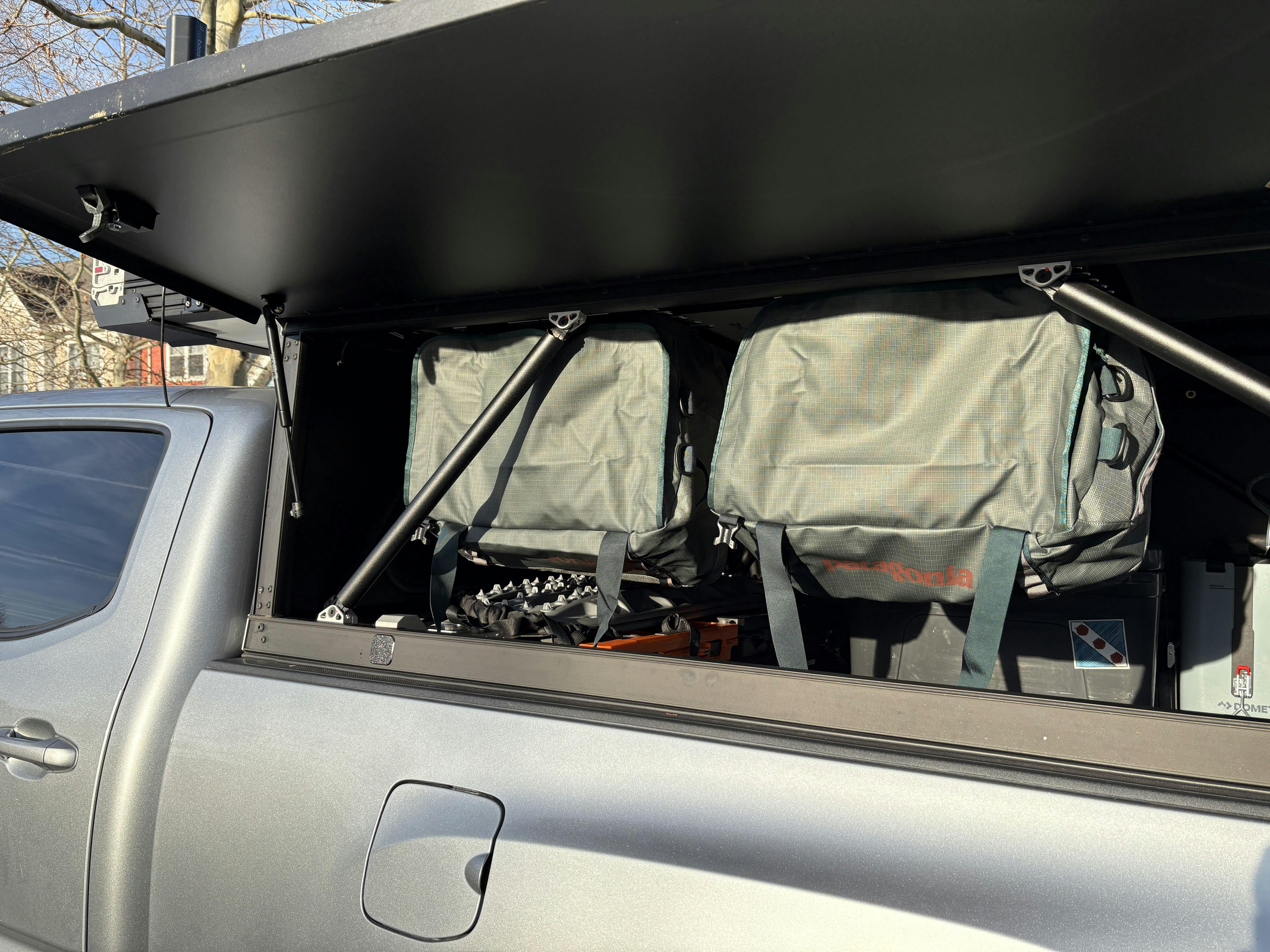 Hang duffels as cabinets in truck toppers with LoftLockers